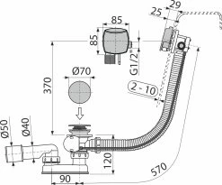 Kielle Afvoergarnituren – Badafvoer En Vul Overloopcombinatie, Lengte 570 Mm, Chroom 11601030