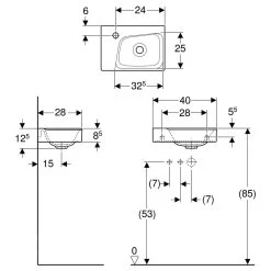 Geberit Xeno 2 – Fontein 400×280 Mm, Kraangat Links, Zonder Overloop, KeraTect, Wit 500.528.01.1