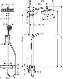 Hansgrohe Crometta – Showerpipe E 240 Doucheset Met Thermostaat, EcoSmart 9 L/min, Chroom 27281000