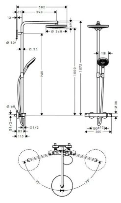 Hansgrohe Raindance S – Doucheset Showerpipe 240 Met Thermostaat, EcoSmart 9l/min, Chroom 27116000