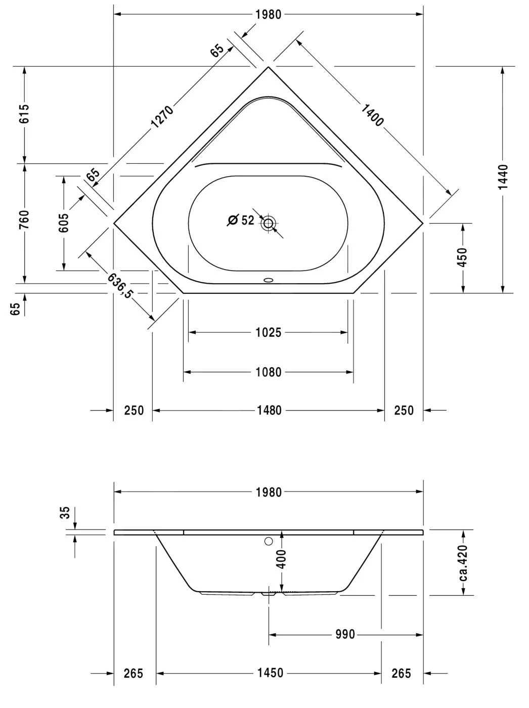 | Plaatsing en montage | hoekbad voor inbouw |