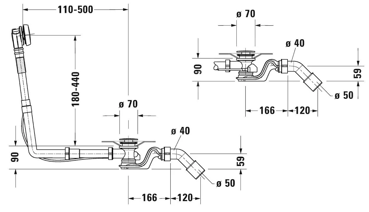 Bette Toebehoren – Bad Af- En Overloopgarnituur, Met Bowdenkabel, Lengte 1070 Mm, Chroom B603-901