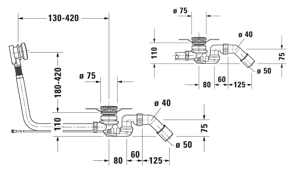 Het is aanbevolen om een aansluitslang voor afvoer- en overloopgarnituren met bodeminlaat aan te schaffen.