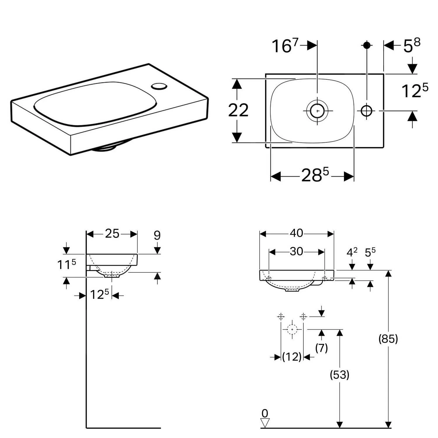 Geberit MyDay – Wastafel, 600×480 Mm, Met KeraTect, Wit 125460600
