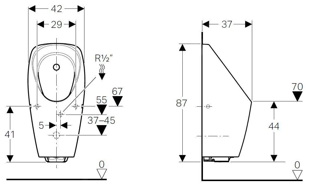 Geberit Urinoirs – Urinoir Tamina, Voor Geïntegreerd Besturing, Waterloos, Wit 116.147.00.1