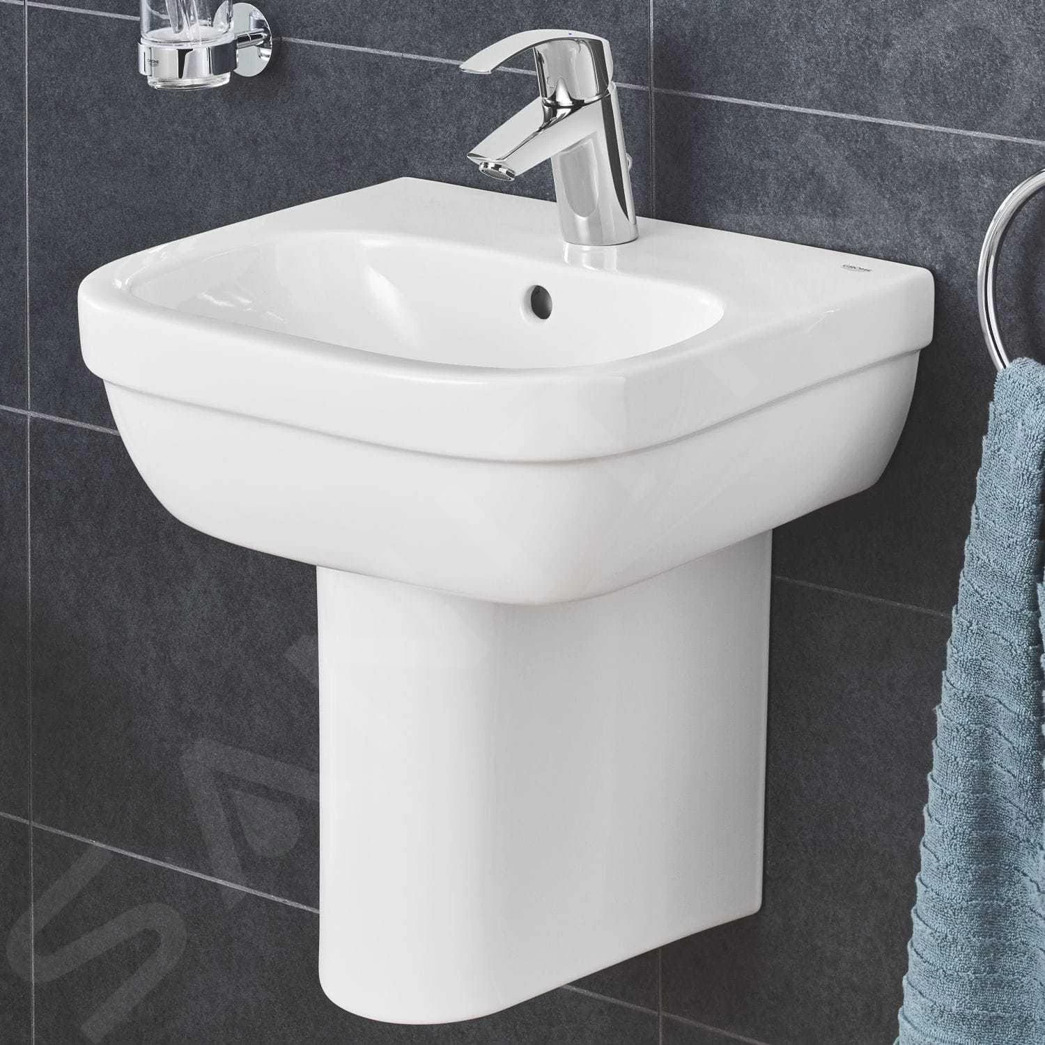 De compacte GROHE Euro Ceramic wastafel is een ideale oplossing voor moderne badkamers, en dat met name door zijnn elegante, onopvallende vormgeving. Hij is ideaal in combinatie met een een halve zuil. Uw esthetisch uniforme droombadkamer kunt u nu eenvoudig realiseren doordat GROHE Euro Ceramics sanitair op perfecte wijze harmonieert met de  GROHE Eurostyle en GROHE Eurosmart badkamerkranen. Door te kiezen voor sanitair van GROHE kiest u voor de knowhow van een expert van wereldformaat, het bedrijf GROHE en voor meer dan een eeuw ervaring en technologische expertise van de Japanse fabrikant LIXIL, leider in de afwerkingstechnologie. GROHE Euro Ceramicsanitair – praktische functies en een modern design, dat uw levensstijl op perfecte wijze aanvult.