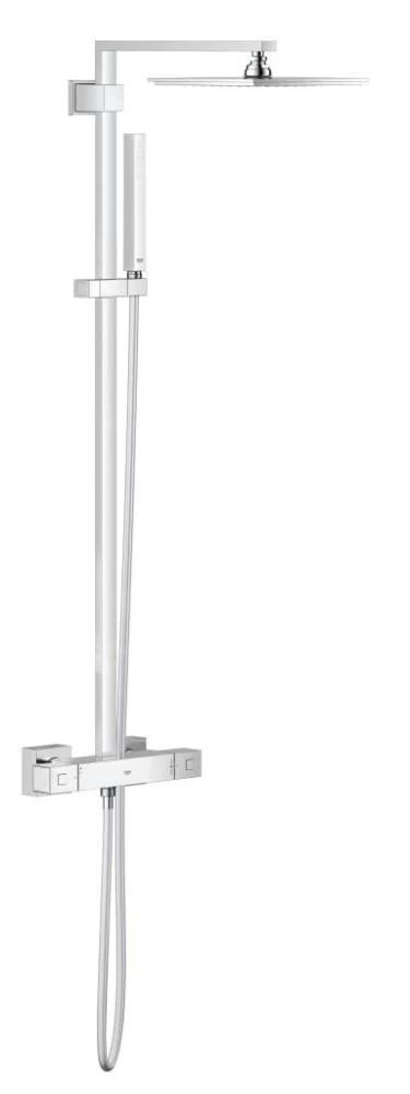 Ervaar direct in je badkamer een echt spa-gevoel dankzij dit GROHE Euphoria Cube XXL 230 douchesysteem. Het kubusvormige ontwerp zal perfect passen bij elke moderne badkamer en dankzij de GROHE StarLight beschermlaag zal de set er jarenlang perfect uitzien. De hoofddouche zorgt middels de zachte Rain-straal voor pure ontspanning en helpt om al stress na een zware werkdag weg te spoelen, terwijl de handdouche de krachtige Normal-straal biedt – optimaal voor alledaagse douchebeurten. De GROHE DreamSpray-technologie zorgt dan dat het waterstraal vanuit elk sproeigaatje gebalanceerd stroomt. Pure douchebelevenis gegarandeerd! En dankzij de speciale GROHE SpeedClean siliconen noppen kun je snel en efficiënt alle kalkaanslag van de douchekoppen met slechts een vinger af te wegen. Â