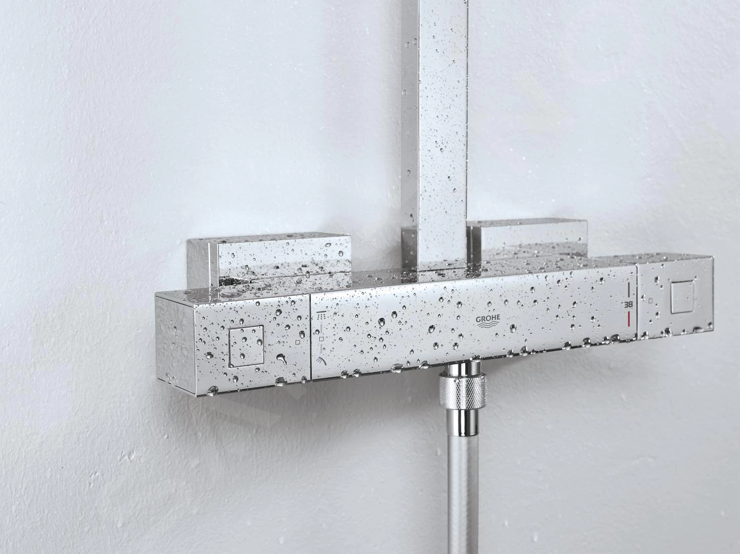 Voor de probleemloze samenwerking van alle elementen zorgt de wandthermostaat samen met een aantal veiligheidsfuncties. De GROHE SafeStop veiligheidsknop beschermt je tegen verbranding door de temperatuur niet hoger dan 38°C laten oplopen. Dat deze temperatuur constant tijdens het douchen blijft, wordt gegarandeerd door de geweldige GROHE Turbostat-technologie. De duidelijke GROHE EasyLogic-symbolen zorgen voor eenvoudige en intuïtieve bediening. Voor de waterbesparing zorgt dan de GROHE EcoJoy-technologie, die het waterverbruik aanzienlijk vermindert zonder dat je het merkt in het gebruik.