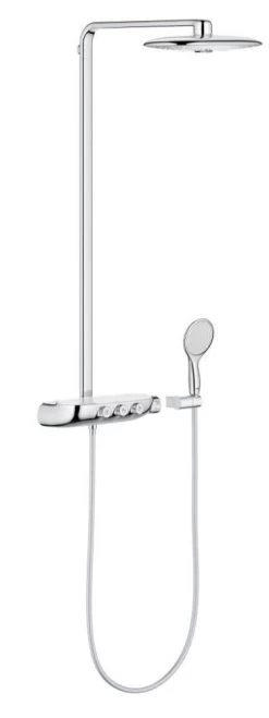 Het bedienen van de doucheset middels de thermostatische kraan is eenvoudig en intuïtief. Je stelt de watertemperatuur eenvoudig in met de ene knop en de straalintensiteit met de andere. Eenvoudiger kan dat niet! De GROHE SafeStop-veiligheidsfunctie voorkomt dan onaangename verbrandingen door de temperatuur niet hoger dan 38 ˚C laten oplopen. Voor je veiligheid verder zorgt de GROHE CoolTouch-technologie, hiermee worden de oppervlakken nooit te heet. Een praktische toevoeging is zeker en vast de GROHE EasyReach-douchetray, waarmee je favoriete wasmiddelen en cosmetica binnen handbereik hebt. Voor meer geniet zorgt de krasbestendige StarLight chroom afwerking, waardoor alle oppervlakken jarenlang stralend blijven. Bovenop, de GROHE EcoJoy waterbesparende functie draagt bij aan het milieu. Kies voor het GROHE SmartControl douchesysteem en geniet van pure Duitse perfectie.