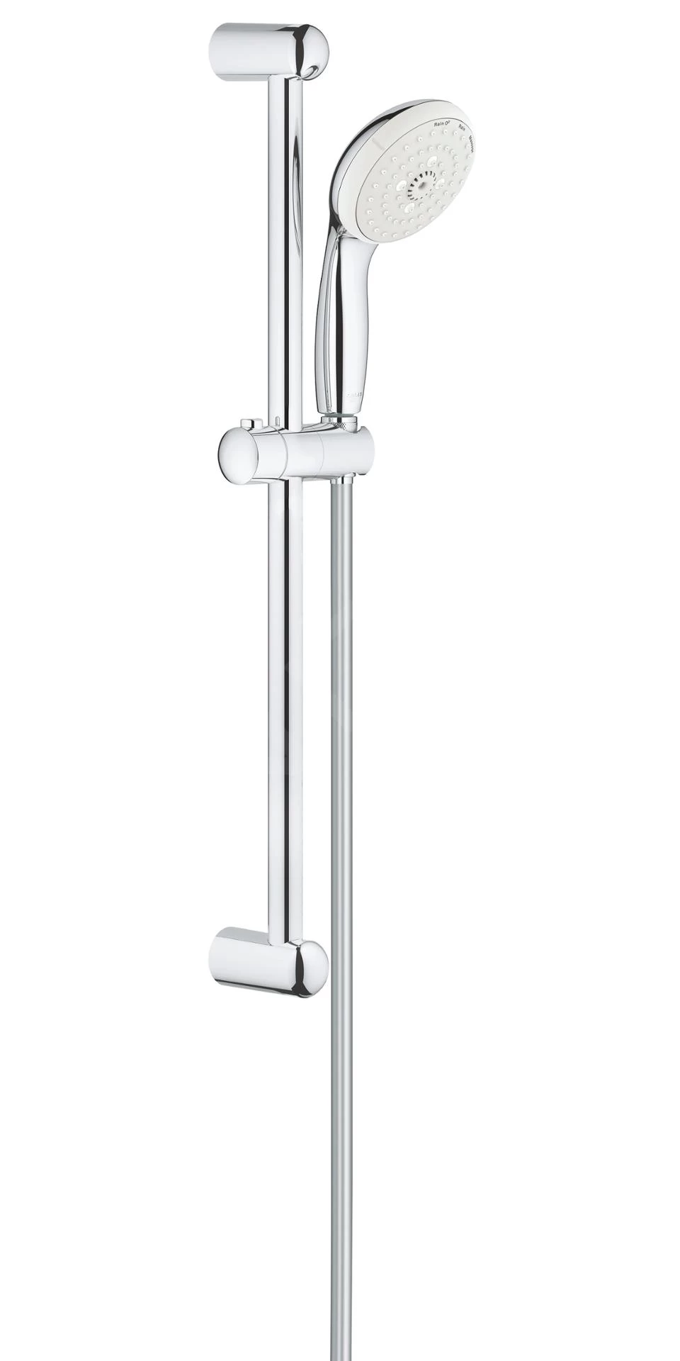 Deze doucheset uit de GROHE New Tempesta 100 lijn vormt het adembenemende middelpunt van elke badkamer. De slijtvaste verchroomde GROHE StarLight afwerking geeft de handdouche, douchestang en de slang een aantrekkelijk, stralend aanzien en maakt zeer eenvoudig onderhoud mogelijk. De ShockProof silicone ring beschermt uw douche tegen beschadiging bij vallen. Dankzij het SpeedClean systeem is de verwijdering van kalkaanslag rond de silicone sproeigaatjes nog slechts een kwestie van lichtjes wegvegen. De keuze uit drie straalsoorten maakt van uw douche een wellness-belevenis. Voorbeeld hiervan is de met lucht verzadigde GROHE Rain O2 straal, waarbij u omgeven wordt door een extreem fijne en rijke waterstraal. De GROHE DreamSpray technologie zorgt voor een uitgebalanceerde waterstraal uit alle sproeigaatjes. Geef uw badkamer allure met deze topklasse doucheset.