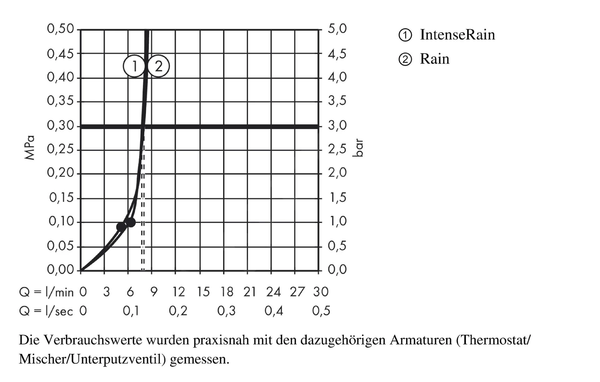 - doorstroming bij IntenseRain (bij 0,3 MPa): 9 l/min