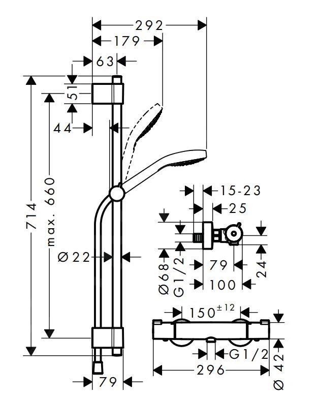 - aansluiting: S-koppelingen G 1/2, hartafstand 150 mm