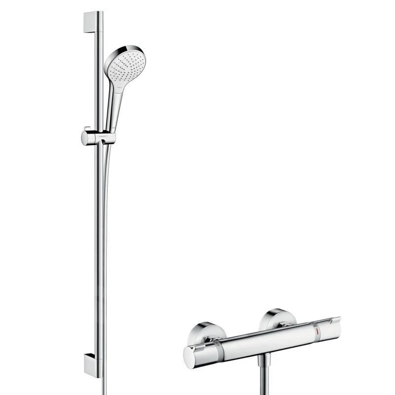 De doucheset omvat een thermostatische douchekraan en een Croma Select S Vario handdouche, die uitgerust is met een Unica Varia douchestang en een Comfortflex doucheslang met metalen look. De doucheslang is namelijk 1600 mm lang en dankzij een speciale draaibare kogel wordt hij nooit verdraait. De douchekop biedt twee heerlijke straalsoorten: de krachtige IntenseRain en de verkwikkende TurboRain, waar je tussen kunt schakelen met de speciale Select-knop. De Ecostat S thermostatische douchekraan is uiterst stijlvol en functioneel. De kraan beschikt over een duurzame keramische kardoes van hansgrohe kwaliteit en een speciale EcoStop waarmee je het waterverbruik met slechts een druk op de knop kunt beperken tot 10 liter water per minuut. De douchekraan is bovenop voorzien van een geluidsisolatie en een heetwater blokkering bij 40°C. Waterbesparend, veilig én vriendelijk geprijsd! Deze doucheset is gewoon een aanrader.