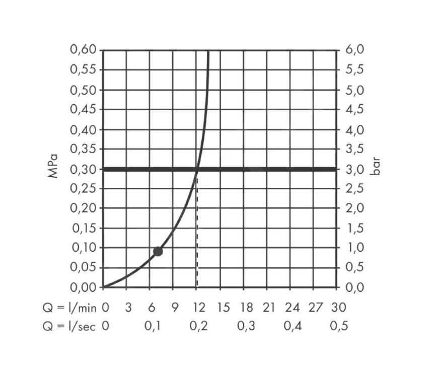 - maximale doorstroming bij 0,3 MPa:Â 12,3 l/min