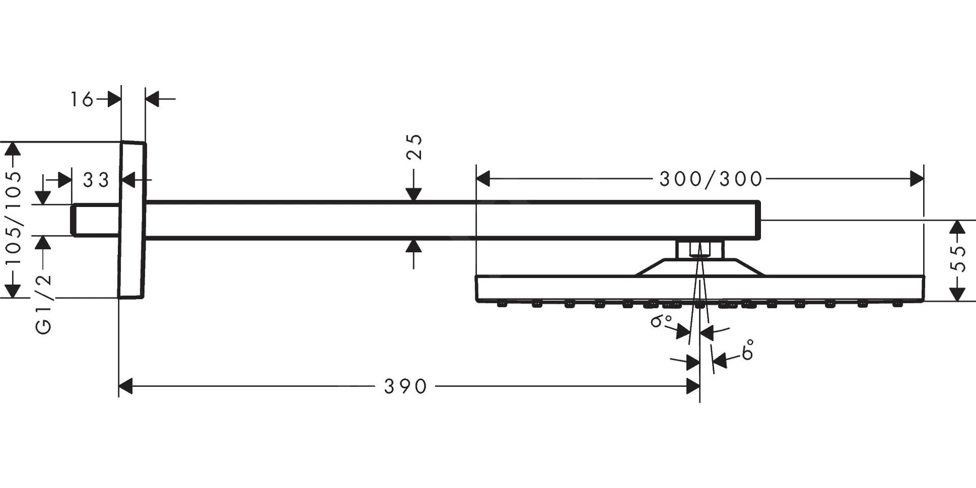- afmetingen douchekop: 300 x 300 mm XXL Performance