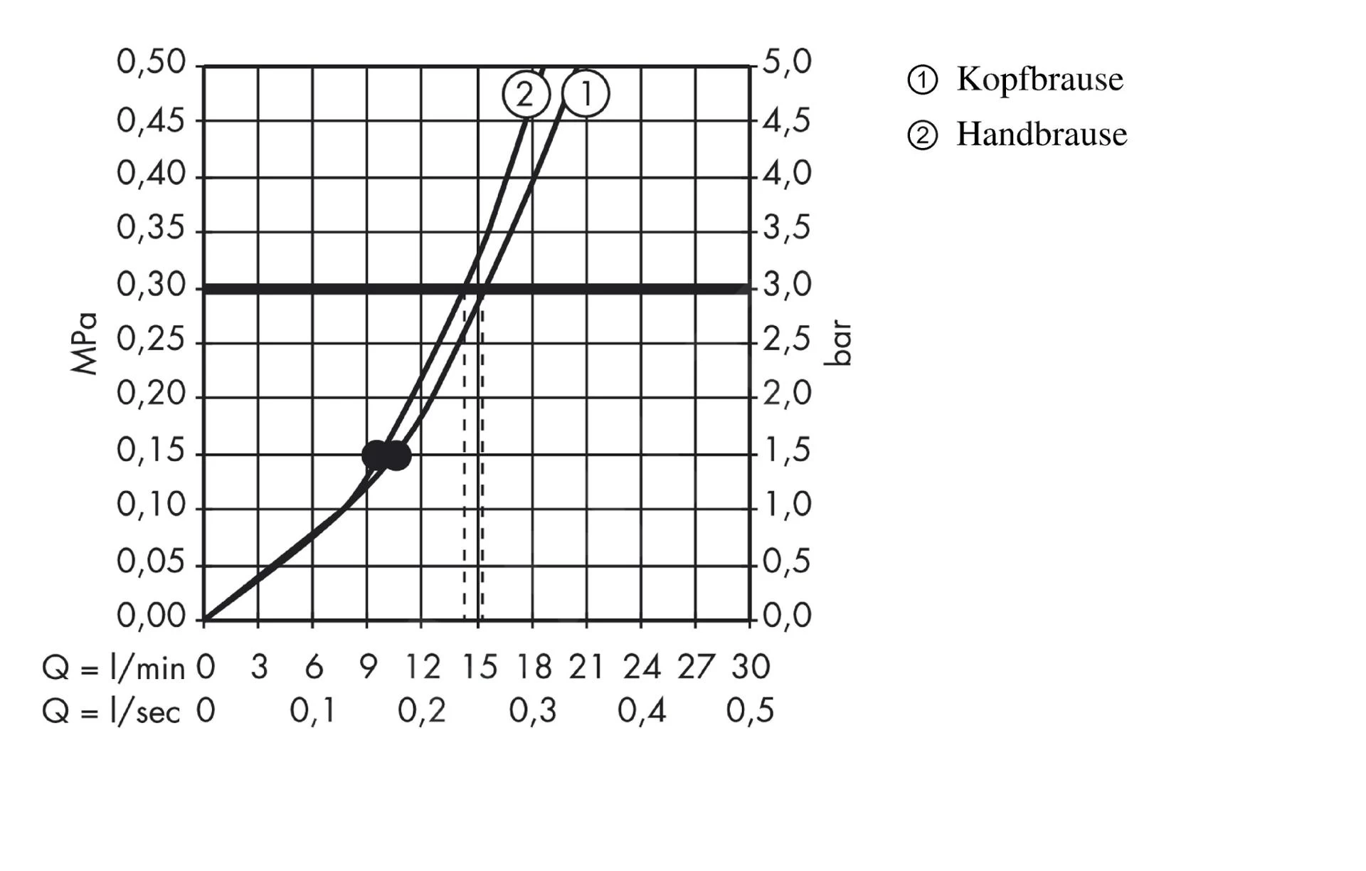 - maximale doorstroming (bij 0,3 MPa): 15 l/min