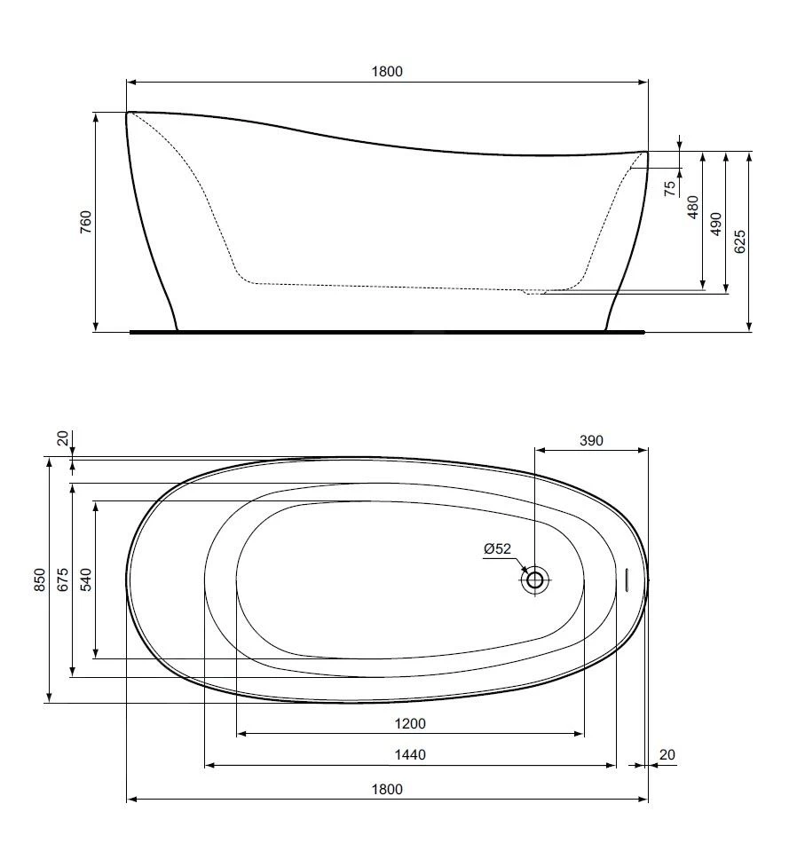 - afmetingen: 1800x850x760 mm (BxDxH)