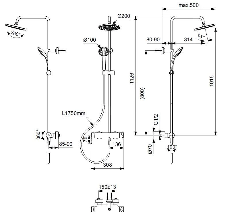 - handmatige 2-weg schakelaar geïntegreerd in het kraanhuis