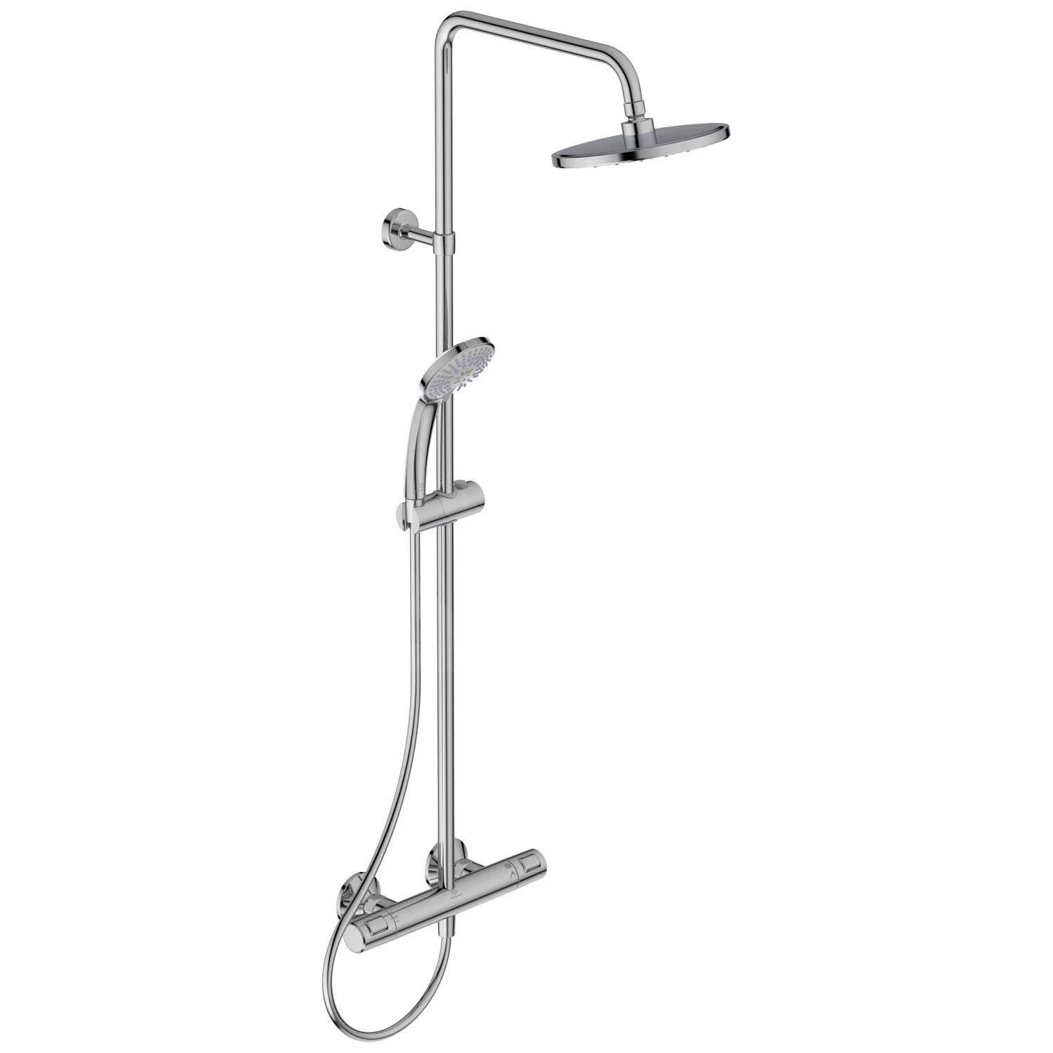Waarom apart kiezen voor een thermostatische douchekraan, hoofd- en handdouche en douchestang, als je direct én voordelig een complete doucheset kunt verkrijgen? Ideal Standard CeraTherm T25 doucheset overtuigt niet alleen met zijn hoogwaardig design, maar ook met topprestaties. Het bestaat uit een thermostatische douchemengkraan met een beveiliging tegen verbranding. De Ideal Standard CeraTherm doucheset bevat verder een handdouche met een diameter van 100 mm, waarbij je kunt kiezen uit drie douchestralen – Rain, Fine Rain en Massage. Een andere belangrijk onderdeel is natuurlijk de Idealrain hoofddouche met een diameter van 200 mm en inclusief een antikalkfunctie. Een bijpassende douchestang met een 1600 mm lange kunststof zilverkleurige Idealflex slang mag natuurlijk niet ontbreken. Kortom, de Ideal Standard CeraTherm T25 doucheset biedt alles wat je nodig hebt voor een perfecte douche.Â
