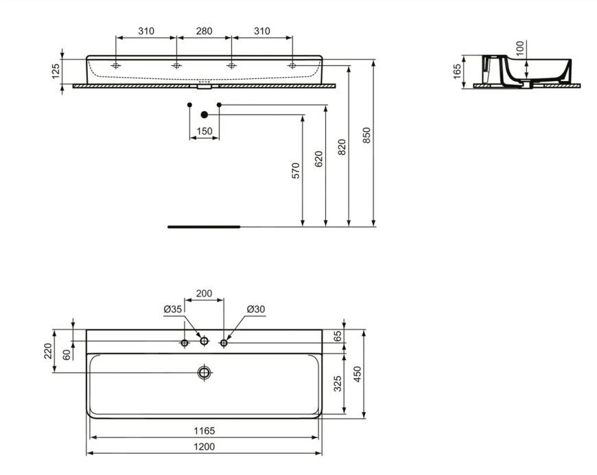 Afvoerafdekking en bevestigingsset niet meegeleverd.