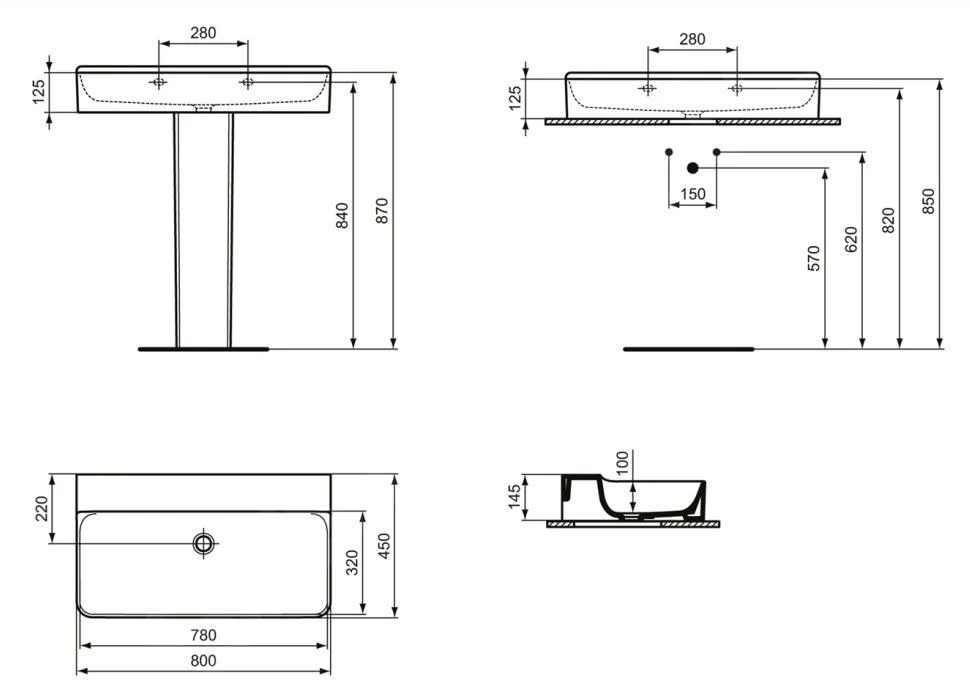 Afvoerafdekking en bevestigingsset niet meegeleverd.