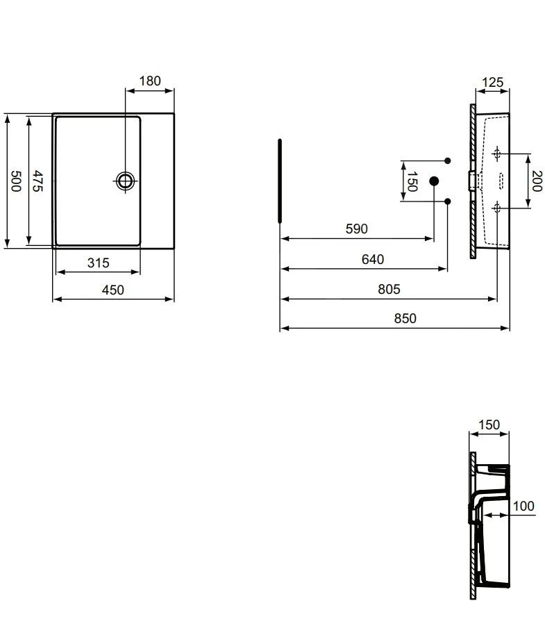 Afvoerafdekking en bevestigingsset niet meegeleverd.