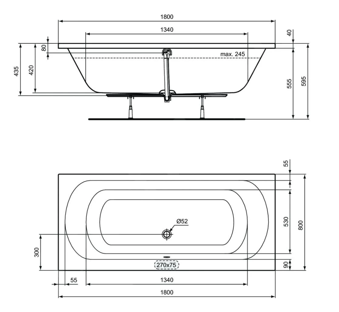 Ideal Standard Simplicity – Bad 1800×800 Mm, Wit W004601