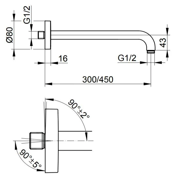 | Lengte douchearm [mm] | 300 |