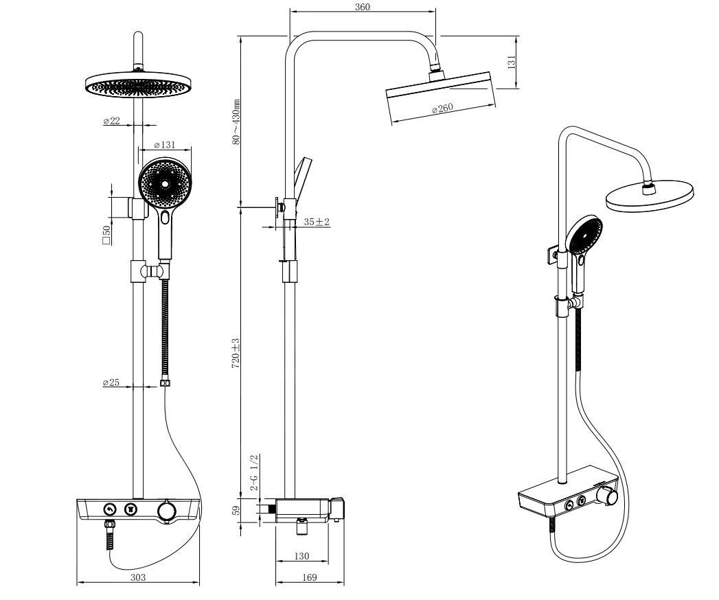 ✔ in hoogte aanpasbare hoofddouche