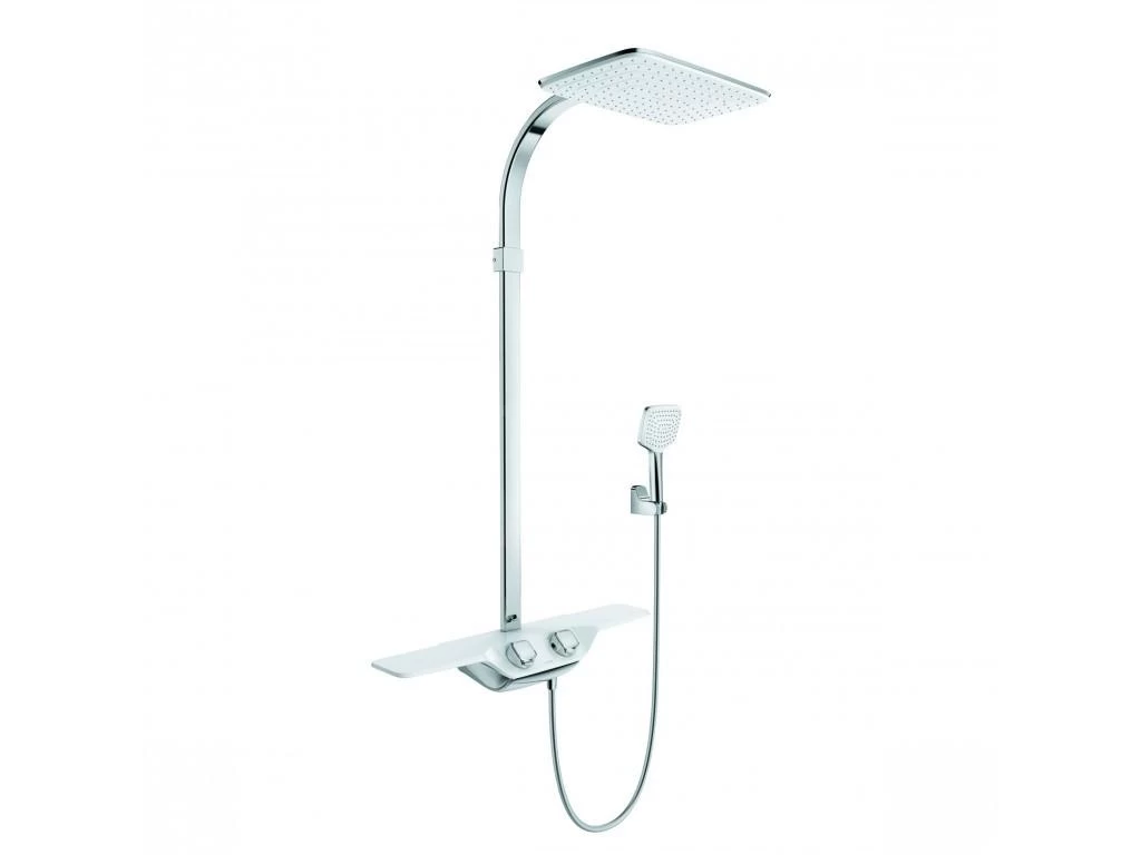 Maak kennis met deze krachtige doucheset van Kludi. Het Kludi Discovery douchesysteem uit de Cockpit collectie staat voor helder design dat zal elke moderne badkamer perfect aanvullen. De doucheset omvat een royale regendouche, een handdouche met anti twist doucheslang en douchehouder, een thermostatische douchekraan en een uiterst praktisch planchet van 50 cm – ideaal voor alle wasbenodigdheden en cosmetica!