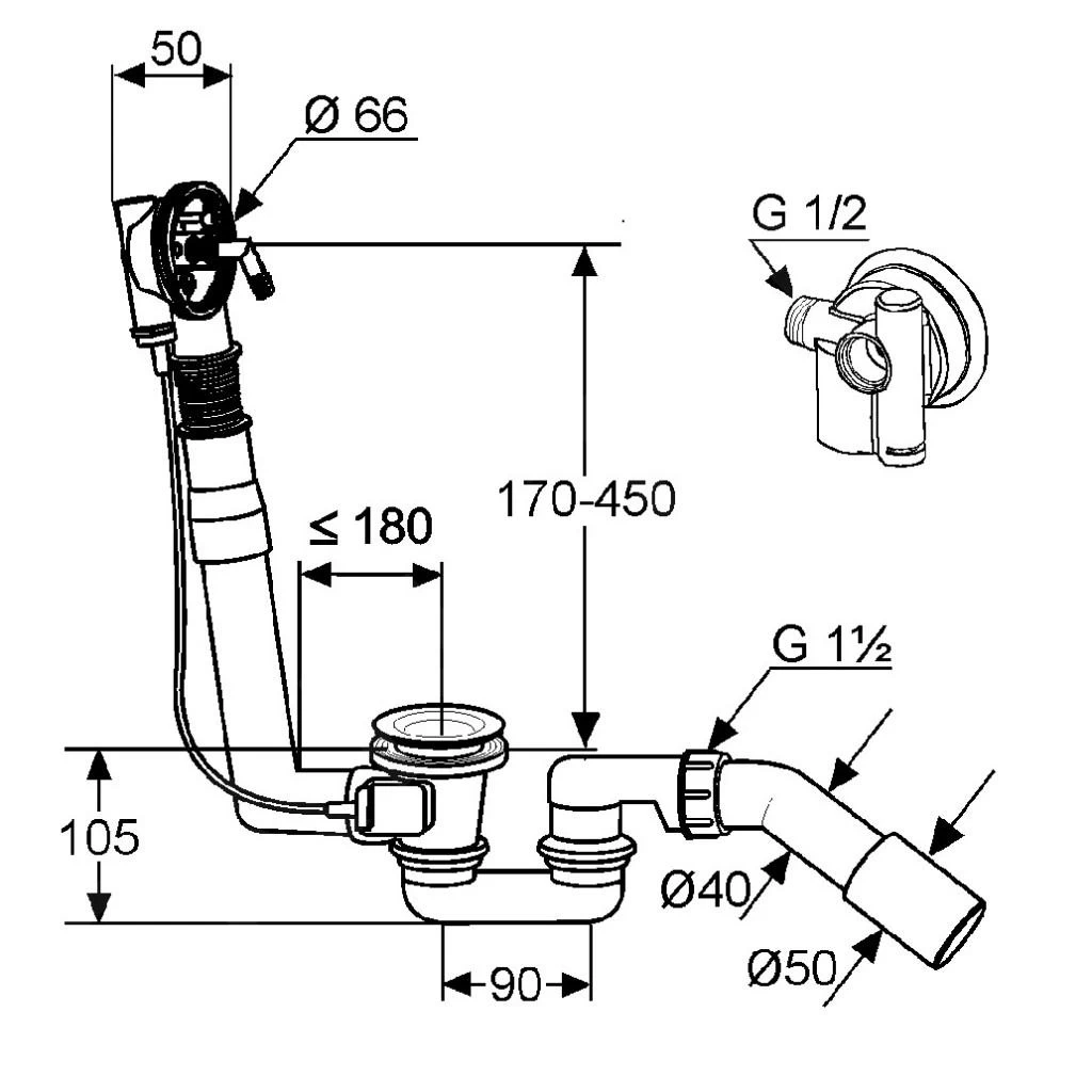 - waterafsluiter met 50 mm diepte