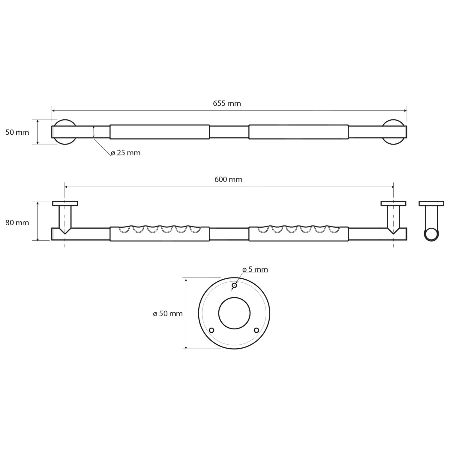 - afmetingen 655 × 50 × 80 mm