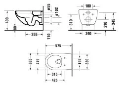 Duravit ME By Starck – Hangend Toilet Compact, Rimless, Met WonderGliss, Wit/mat Wit 25300926001