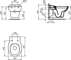 Duravit Viu – Wandtoilet Compact, Rimless, DuraFix, Met WonderGliss, Alpine Wit 25730900001