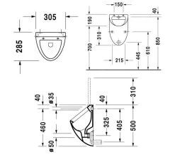 Duravit Starck 3 – Urinoir, Met Achterinlaat, Rimless, Met HygieneGlaze, Alpine Wit 0827252000