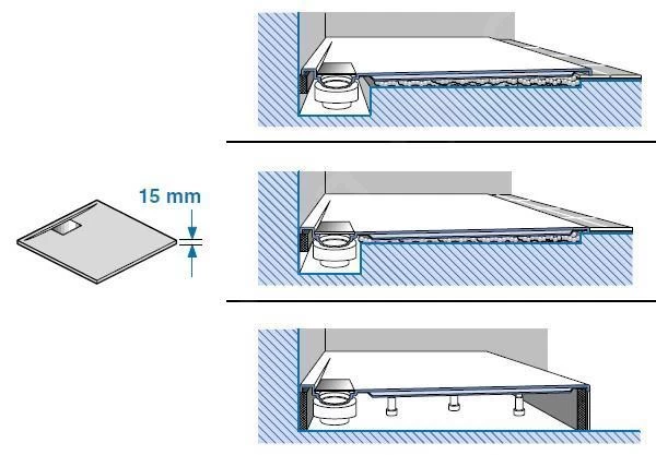 Poten bij de douchebak en afvoergarnituur niet meegeleverd.