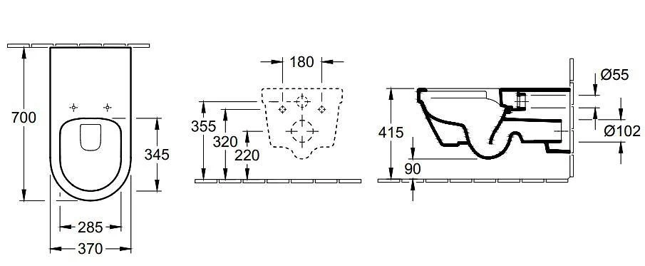 - lengte: 700 mm, breedte: 370 mm