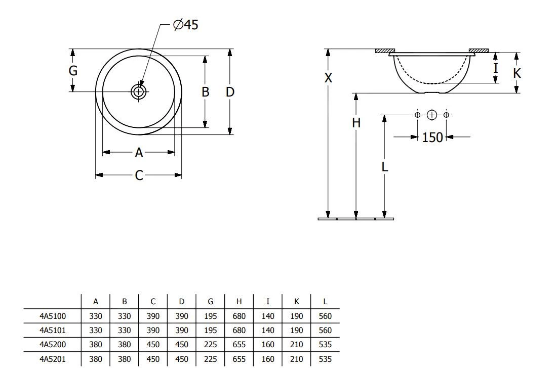 Ronde onderbouwwastafel