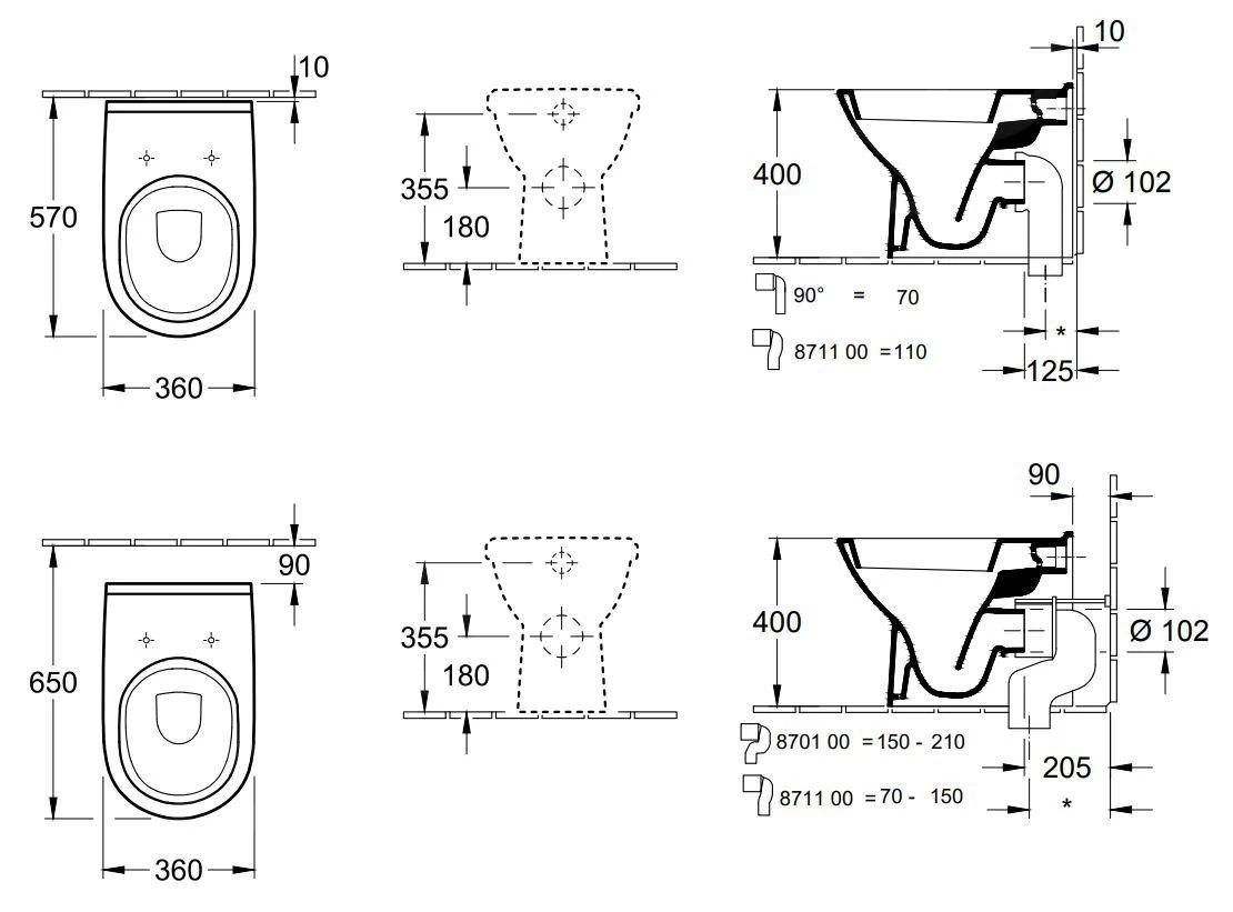 - horizontale afvoer, bij gebruik van Vario afvoerbocht aansluiting op verticale afvoer mogelijk